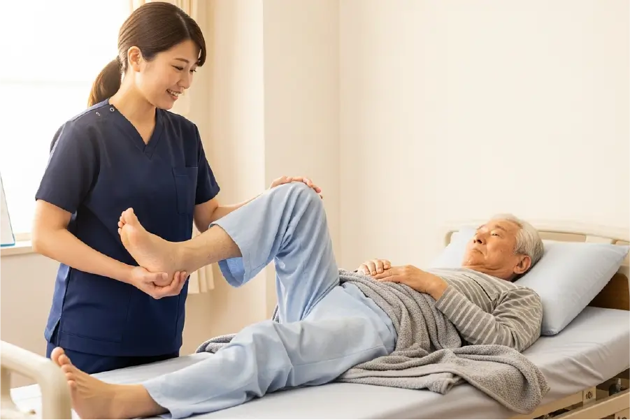 関節可動域訓練: 固まった関節を動かし、拘縮の進行を防ぎます。