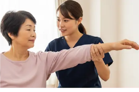 「硬くなっていた腕が少しずつ上がるように。着替えが楽になり、心も明るくなりました。」