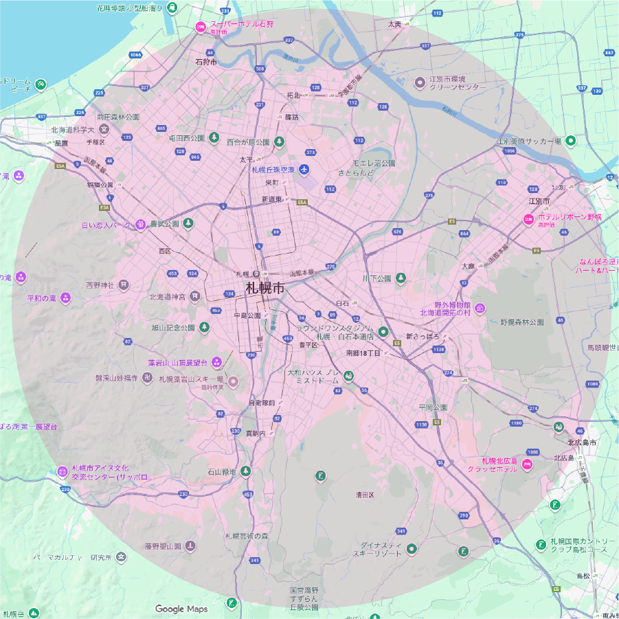 ※上記の市町村内であっても、当院(札幌市白石区)から半径16km圏内が訪問可能な範囲となります。 そのため、札幌市内であっても一部地域(手稲区 金山・明日風・稲穂周辺など)は対象外となる場合がございます。