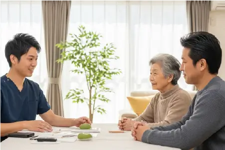 当院(札幌市白石区)の担当者が、ご自宅へ無料でお伺いし、具体的な施術内容、料金、手続きの流れを詳しくご説明します。ご家族やケアマネジャー様同席の上、不安な点を全て解消していただけます。